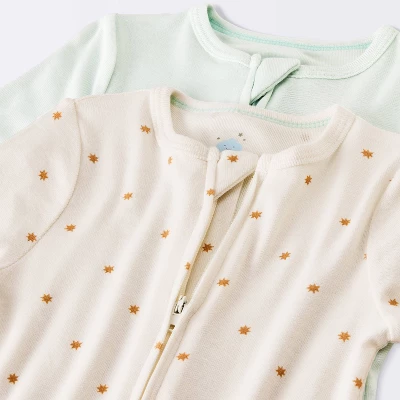 Add neutral shades to your little one’s closet with the 2-Pack of Neutral Stars So Very Soft Modal Blend Sleep N’ Play from Cloud Island™. This pack of two sleep n’ plays includes one in solid color and one with a star print for fun, everyday options. Made of modal fabric with added spandex, the pieces offer soft and stretchy comfort, and the long sleeves and footed ends provide full coverage. Designed with fold-over mitten cuffs, the sleep n’ plays also have front full-length zipper closures for easy dressing and diaper changes. Best of all, the snap tabs help prevent their chin from scratches.