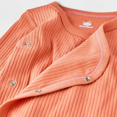 Bring extra charm to your baby’s looks with the 3-Pack Side Snap Long-Sleeve Bodysuit from cloud island™. This pack of three bodysuits includes one in orange, one in pink and one in peach color to give you a sweet and easy mixing and matching option with their bottoms. Made with 100% cotton, these ribbed bodysuits offer softness and breathability for all-day comfort. With the side and crotch snaps, dressing and changing your baby is easy.