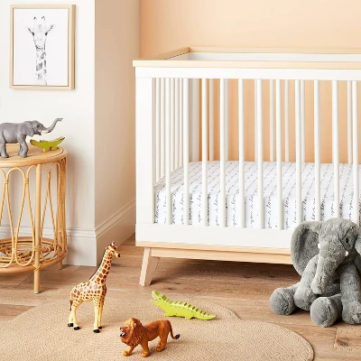 This Fitted Crib Sheet from cloud island™ fits standard cribs and toddler beds. Made from 100% cotton, the standard crib sheet fits a six-inch mattress and is designed with an all-around elastic for a secure fit over the crib mattress. It showcases the message “I Love You” scribbled in a gray cursive font all over a white background to bring sweet style to your little one’s nursery decor.