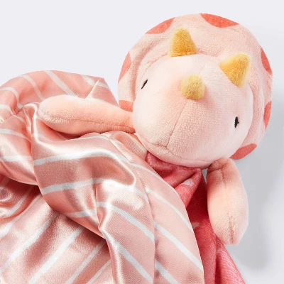 This Small Security Blanket from cloud island™ makes a cute, dino-mite companion for your little one. Made with a soft faux-fur fabric, this cuddly baby accessory is a peach-colored handkerchief-shaped blanket with white spots and striped satin trim in a lighter shade. It is topped with a plush dinosaur head with three yellow spikes, a circular neck frame and adorable little arms that will instantly catch your little one’s attention and encourage them to play and snuggle to their heart’s desire.